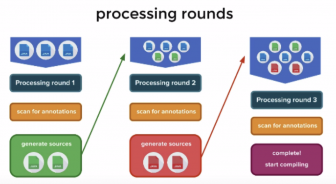 (*아래의 그림처럼 javac에 의해 Annotation은 여러 라운드에 걸쳐 processing 된다.)