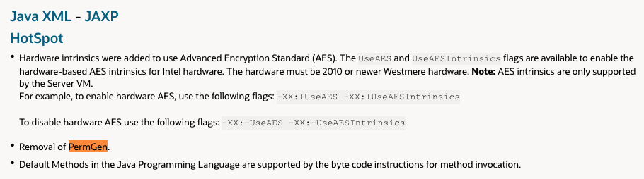 구현 제안서에 따르면 클래스 메타 데이터는 네이티브 메모리에 할당하고, interned String와 클래스 statics는 Java heap으로 이동합니다. Hotspot은 클래스 메타 데이터에 대한 네이티브 메모리를 명시적으로 할당하고 해제할 것입니다. 새 클래스 메타 데이터의 할당은 네이티브 메모리의 사용 가능한 양에 의해 제한되며, 커맨드 라인을 통해 설정된 -XX:MaxPermSize 값으로 고정되지 않습니다.