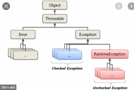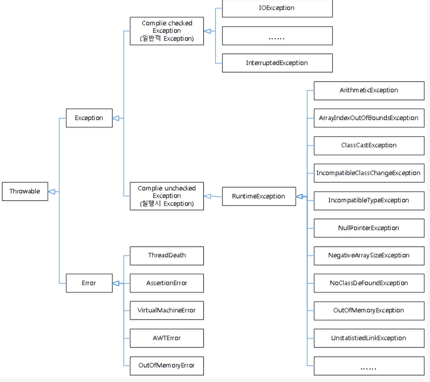- checked Exception은 try로 감싸거나, thorwable로 선언