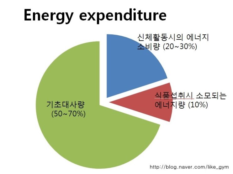 게다가 아래 표를 보면 신체 활동 시의 에너지 소비량은 20% 남짓이다.